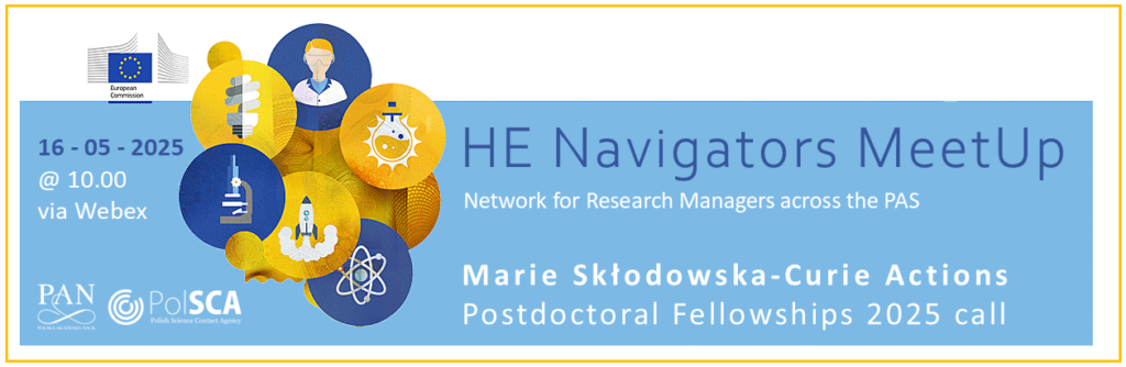 Biuro PolSCA serdecznie zaprasza na kolejne spotkanie sieci Horizon Europe Navigators – społeczności zrzeszającej osoby wspierające badania i zarządzanie projektami w jednostkach Polskiej Akademii Nauk (PAN), a także uczestników ostatniej wizyty studyjnej organizowanej przez PolSCA. Tematem przewodnim tego spotkania będą Stypendia Postdoktoranckie MSCA 2025 w programie Horyzont Europa. Nabór wniosków otwiera się 8 maja i potrwa do 10 września 2025 r.