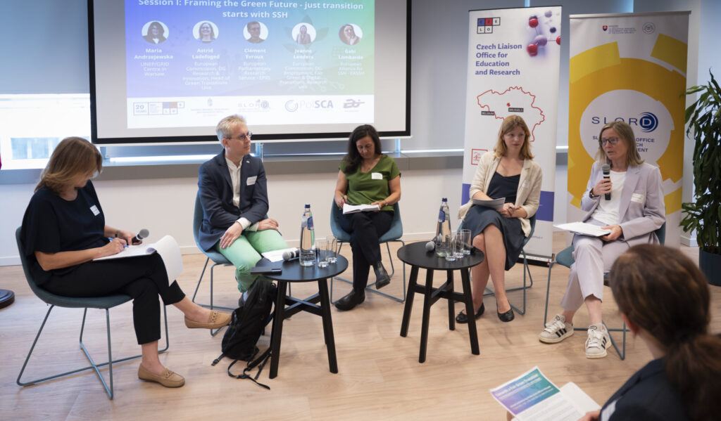 Europa przyspiesza swoją zieloną transformację, ale coraz bardziej oczywiste jest, że same innowacje technologiczne są niewystarczające. Zielona transformacja jest procesem głęboko społecznym. Stawką jest nie tylko restrukturyzacja systemów energetycznych i gospodarek, ale także transformacja społeczeństw w sposób sprawiedliwy, inkluzywny i demokratyczny. Astrid Ladefoged przytoczyła dane, według których mniej niż 50% obywateli UE uważa, że społeczeństwo jest sprawiedliwe, dlatego istnieje ogromna potrzeba zajęcia się tą kwestią. Ponadto, jak wskazała Jeanne Lenders, musimy myśleć szerzej o zmianach na rynku pracy wraz z nadejściem zielonej transformacji, ponieważ tak zwane zielone miejsca pracy to nie tylko te związane z transportem i produkcją energii. Z drugiej strony, UE nie może zapominać o potrzebie innowacji, która może być napędzana na większą skalę przez innowacje finansowane przez sektor prywatny – jak wspomniał Clement Evroux. Głównym tematem panelu pozostała jednak kluczowa rola nauk społecznych i humanistycznych (SSH) – tych dyscyplin, które zapewniają wgląd w ludzkie zachowania, kulturę, instytucje i systemy społeczne – w promowaniu sprawiedliwej i zrównoważonej transformacji. Nauki społeczne i humanistyczne są niezbędne do kształtowania integracyjnych, partycypacyjnych i odpornych ram politycznych, szczególnie w świetle istniejącego rozdźwięku między ambicjami politycznymi a percepcją społeczną. W związku z tym ważne jest, aby nadchodzący Program Ramowy (10PR) wyraźnie uwzględniał nauki społeczne i humanistyczne (SSH) jako podstawowy komponent, zapewniając tym dyscyplinom istotną, strategiczną rolę w kształtowaniu polityk sprzyjających sprawiedliwej, inkluzywnej i społecznie ugruntowanej zielonej transformacji.