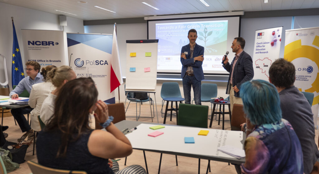 W dniu 17 czerwca 2025 r. biura łącznikowe ds. badań i innowacji V4 w Brukseli wraz z Narodowym Centrum Nauki w Polsce zgromadziły kluczowe osoby z całej Europy, aby omówić, w jaki sposób nauki społeczne i humanistyczne (SSH) mogą kształtować sprawiedliwą oraz sprzyjającą włączeniu społecznemu zieloną transformację. Od decydentów politycznych UE po naukowców z regionów V4, uczestnicy zastanawiali się, w jaki sposób partnerstwa w ramach programu Horyzont Europa i kształtowanie polityki oparte na dowodach (evidence-based policy making) mogą sprawić, że nikt nie zostanie pominięty w transformacji klimatycznej Europy. Poniżej prezentujemy pełne podsumowanie wydarzenia oraz informacje, w jaki sposób nadchodzące Europejskie Partnerstwo na rzecz Transformacji Społecznej i Odporności planuje połączyć innowacje i wpływ społeczny.